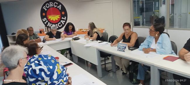 As mulheres dirigentes da Força Sindical realizaram reunião organizadora do Março Mulher, com foco em pautas como o fim da violência contra as mulheres, o fim da escala 6×1 e a redução da jornada de trabalho.